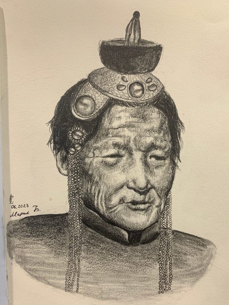 2023 Jun. My great grandma Udgan. Pencil & paper.